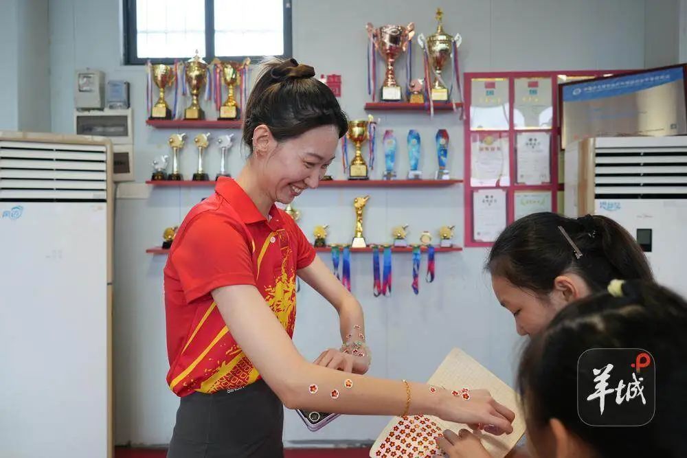 汗水渗入衣衫仍目力专注,一位年青女孩正老成属意每一个孩子的状况,而在番禺另一角的化龙第二小学,午后的体育馆里