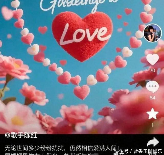 9月27日,陈红在个东说念主抖音账号中发文称,“无论世间若干纷烦闷扰,仍然服气爱满东说念主间!愿婚配里的女东说念主们少一些扞拒与伤害,愿男东说念主多一些累赘与担当,常回家望望!”