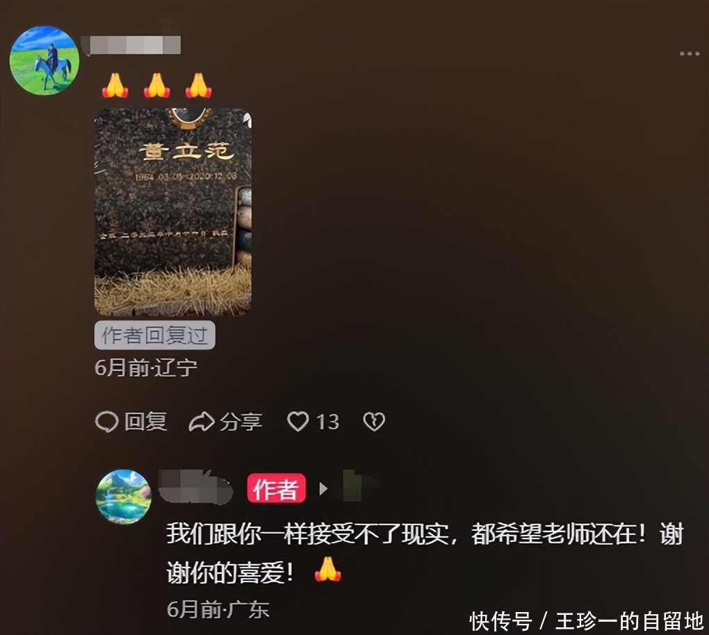 当一位网友曝出董立范的墓碑时,一位与董立范曾合影的女网友说她也经受不了实践,但愿憨厚还在。