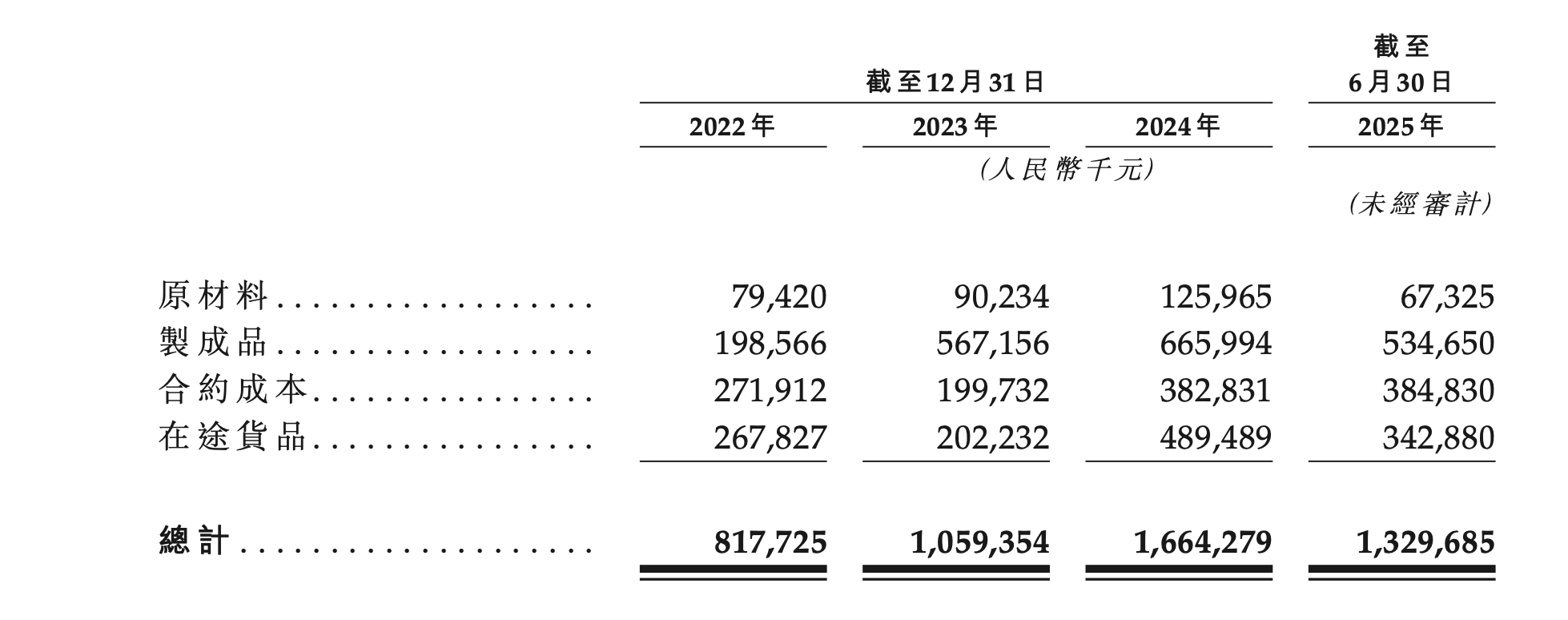除了毛利率问题除外,公司还存在供应商依赖的问题,2024年公司前五大供应商采购额/采购总数比值为65.98%。并且除了应收账款握续增长外,公司的存货料理也面对压力,2022年到2024年,公司的存货及合约本钱从8.18亿元飞腾到16.64亿元,诚然2025年上半年有所着落,但仍有13.3亿元。存货跌价的风险为公司现款流质料带来了挑战。