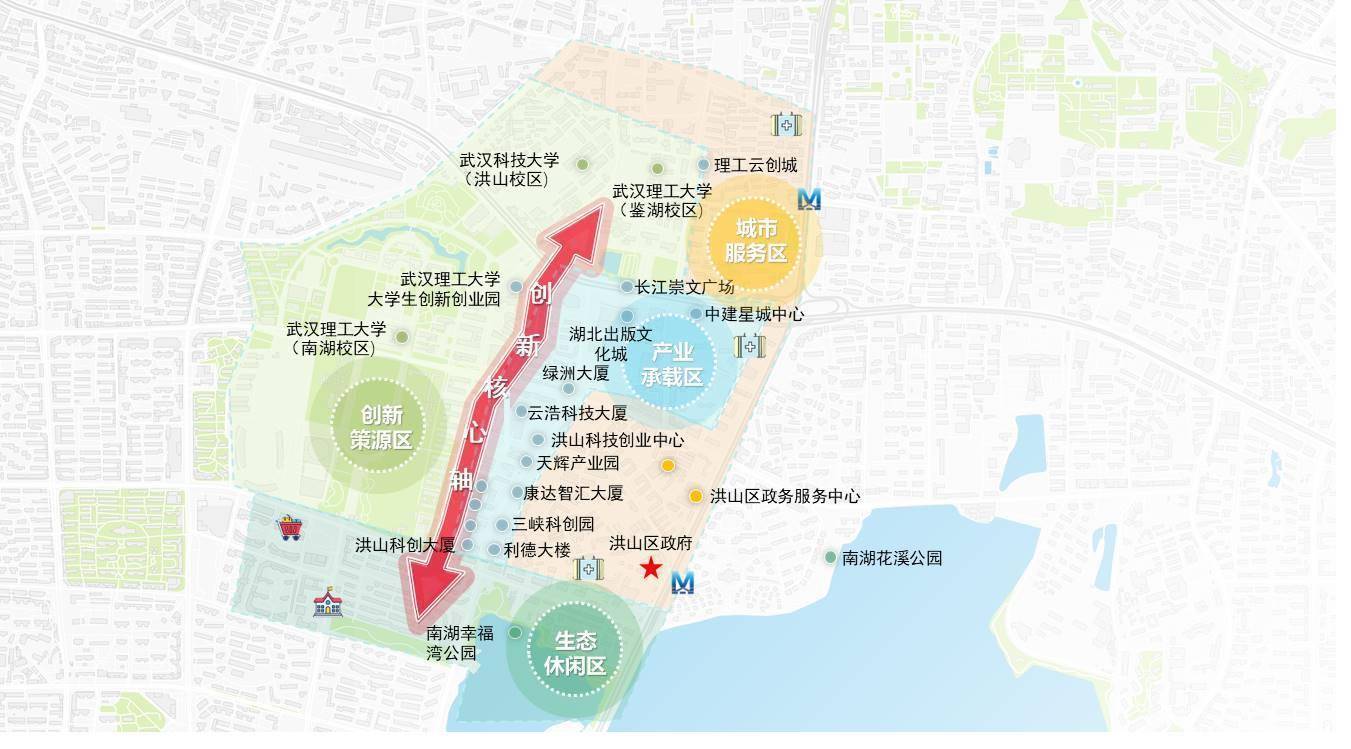 它以“一轴四区多点”空洞南湖硅巷空间时势:书城路看成创新中枢轴,纵向串联东谈主才与产业;武汉理工大学等高校是时刻攻关和原开创新的艰巨高地;北港工业园、洪山科创大厦等楼宇园区组成产业承载区;政务、生意、居住配套组成城市办事区;南湖绿谈、口袋公园等组成生态失业区。