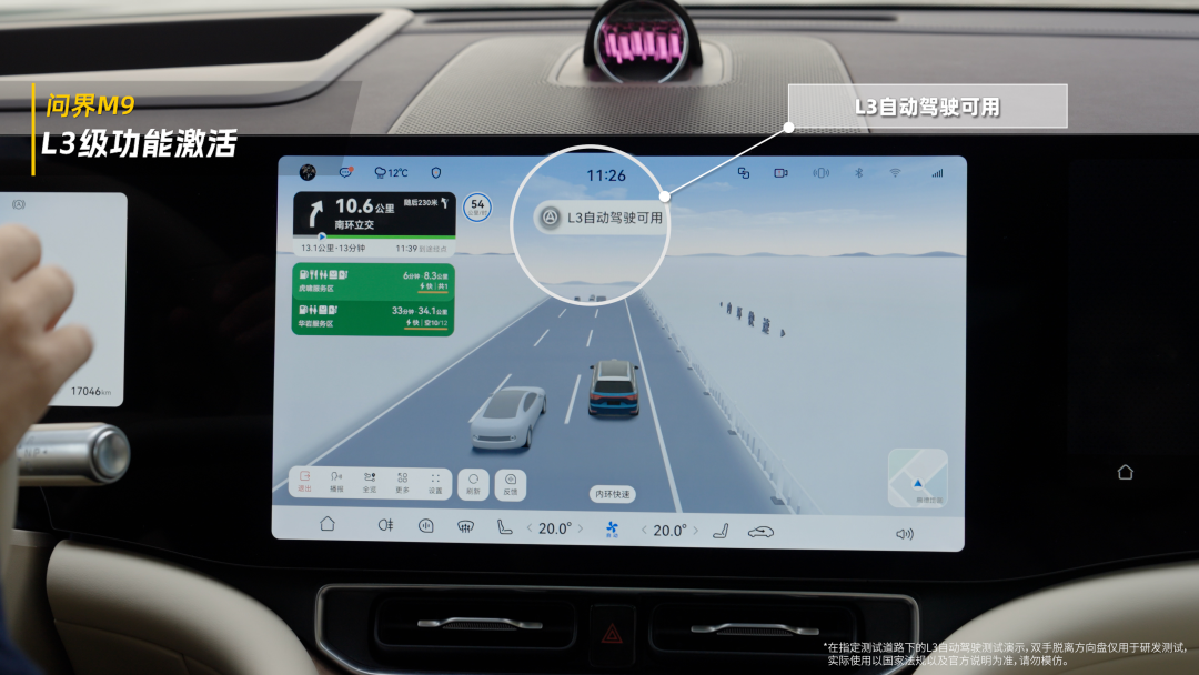 车内的语音以及屏幕交互齐会切换为L3专属花样,比如领航路更粗、系统会深入笔墨“L3领航中”;