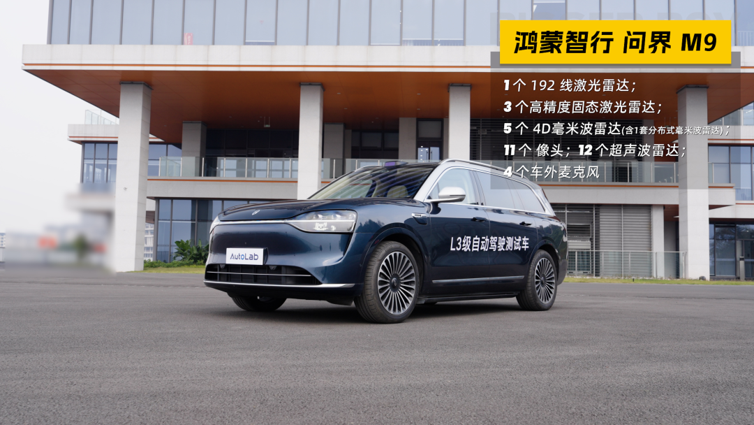 我们此次体验的测试车型是问界M9,车身搭载了包括4颗激光雷达、4个麦克风等36个传感器。