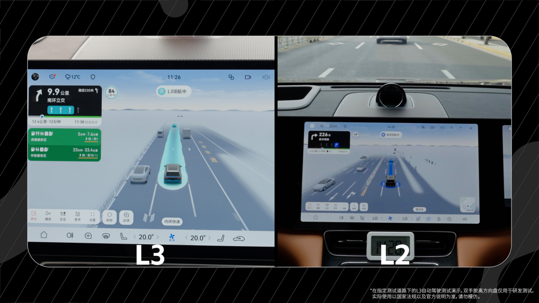 变说念、大车消散等作为齐会出现对应的特写图标,图标下方还有一瞥“L3级自动驾驶中”的小字。